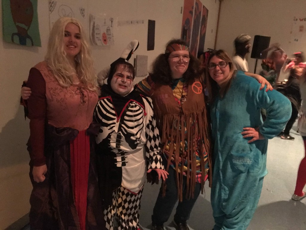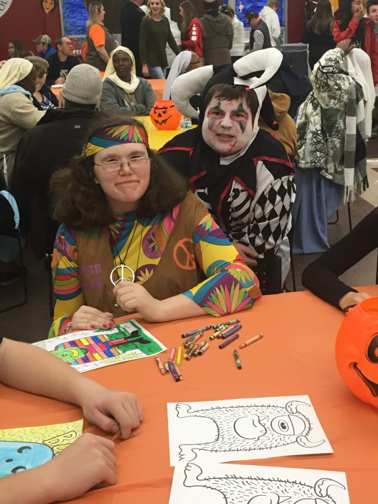 2018-When Randy wanted to be a jester but then wanted to be an evil one. Alyssa was a hippie. He went to about 7-8 Halloween parties and I had to do that make up for everyone of them parties. He always looked so awesome when the make up was first put on. This was one of my favorite costumes